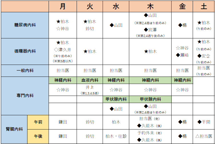 ※腎臓内科、神経内科は予約制となりますのでお問い合わせの上ご来院ください。